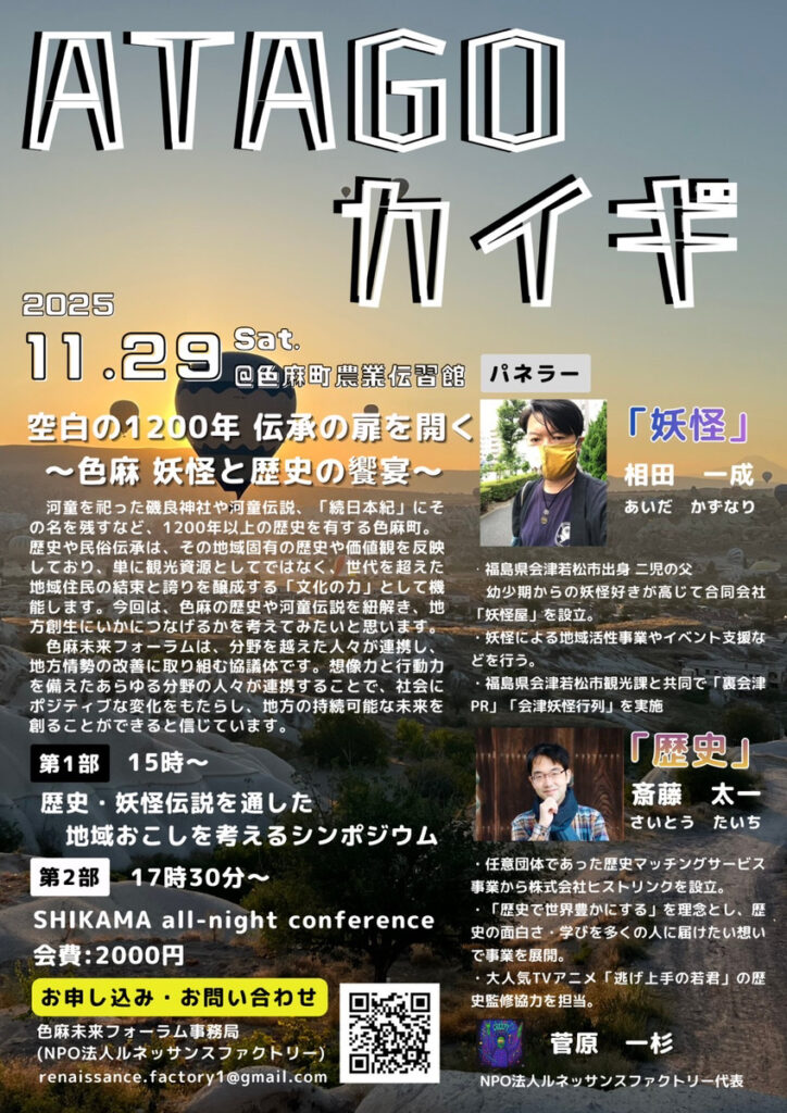 ヒストリンク代表・齊藤太一氏が宮城県加美郡色麻町で行われる「ATAGOカイギ」にパネラーとして出演いたします。
